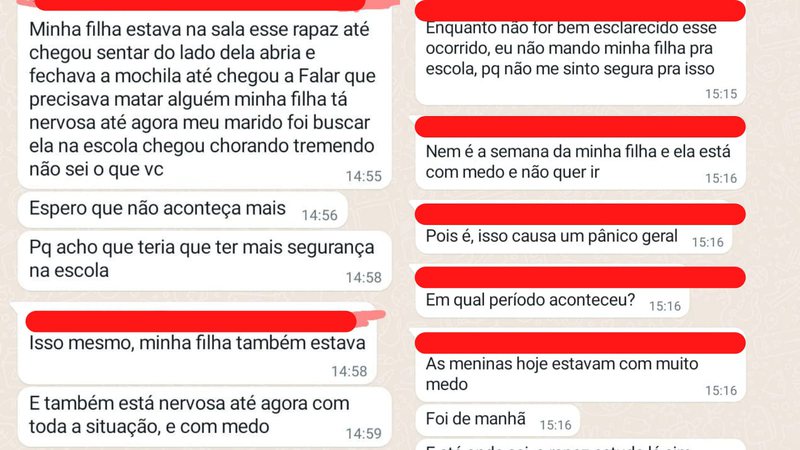 A mãe da aluna também disse à reportagem que sua filha está muito assustada e que vários pais como ela, não vão levar seus filhos para a escola, nesta quarta-feira (29). A reportagem entrou em contato com a SED (Secretaria Estadual de Educação), por meio da assessoria de imprensa, para mais detalhes sobre o ocorrido, mas até a publicação da matéria não houve retorno. O espaço segue aberto.