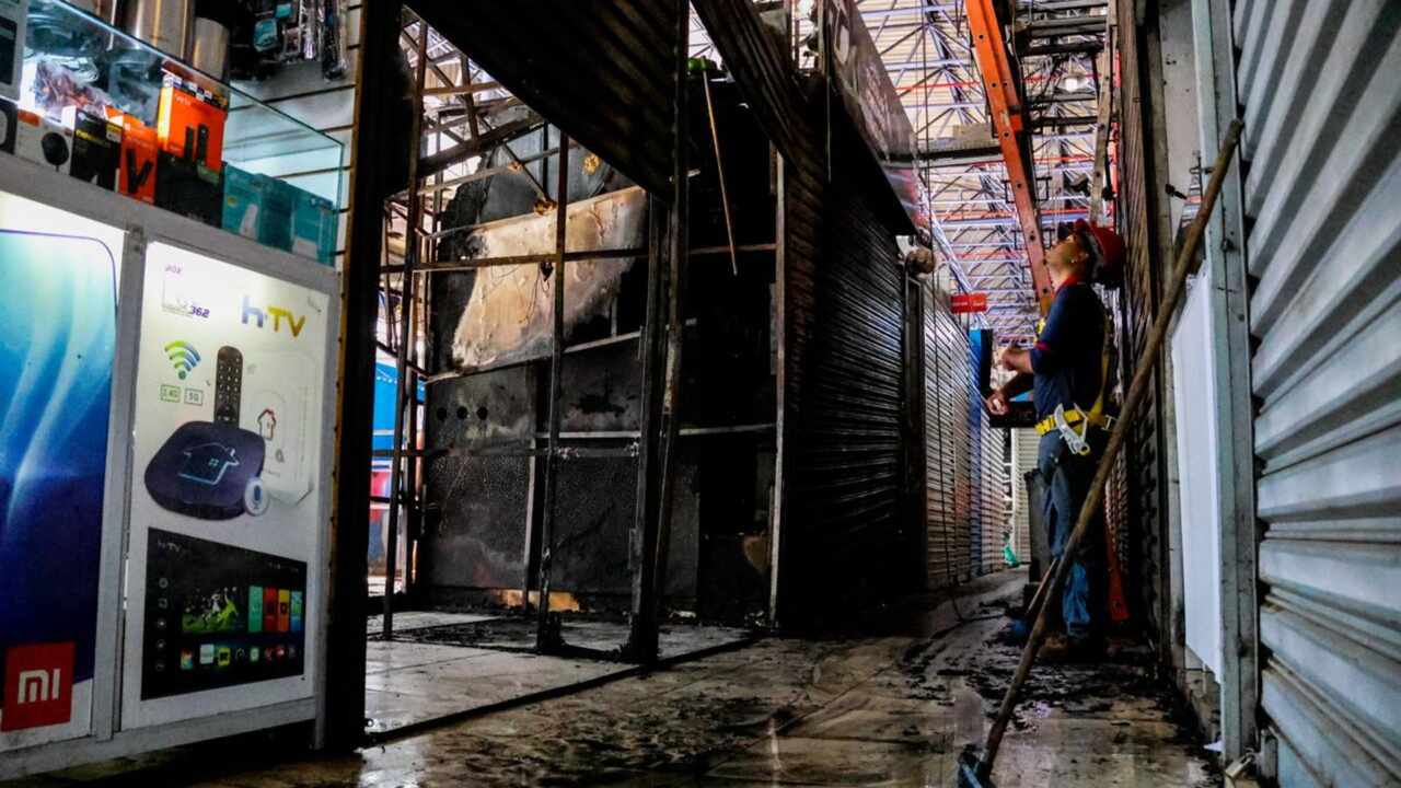 Camelódromo passa por limpeza e funcionários ‘tentam salvar’ itens que molharam no incêndio