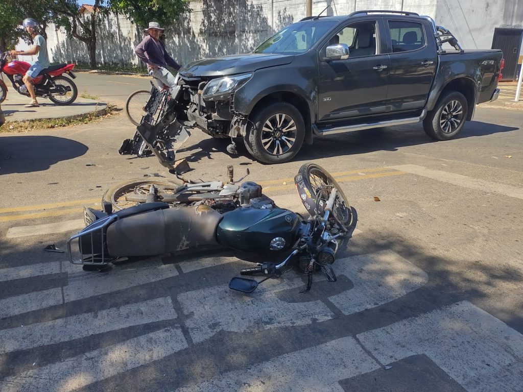 Colisão entre moto e Camionete deixa homem com escoriações em Coxim