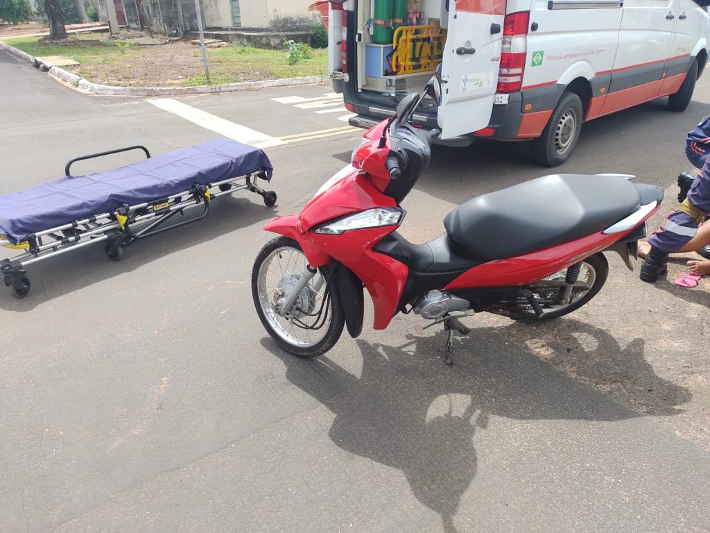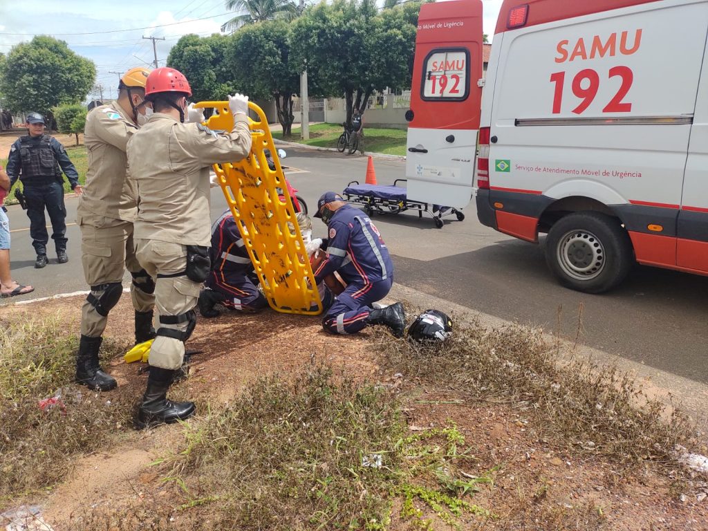 Colisão entre moto e carro deixa motociclista com escoriações em Coxim