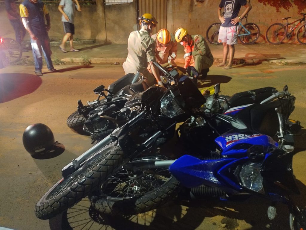 Uma colisão entre motocicletas na noite desta sexta feira(21), deixou uma mulher com escoriações, na avenida Frei Cirino próximo ao Buracão.