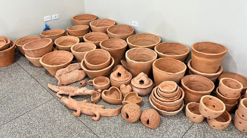 “Essa argila que usamos vem de Rio Verde, a gente pega da Cerâmica Arco-Íris eles disponibilizam para a gente. Eles são parceiros faz mais de 20 anos e lá mesmo a gente queima. Então pegamos esse barro, produzimos a argila aqui, deixamos ela no preparo para subir os vasos e depois da secagem a gente retorna para cerâmica. Eles pegam e queimam para a gente”, explica.