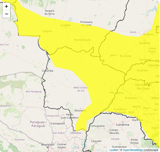 Mato Grosso do Sul está com alerta de tempestade para as próximas 24 horas e 59 cidades estão sob alerta. Conforme o Inmet (Instituto Nacional de Meteorologia), o alerta é válido até às 10h desta segunda-feira (5).