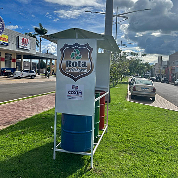 A parceria público-privada entre a Prefeitura Municipal de Coxim e a empresa de coleta Rota Reciclagem está possibilitando a instalação de Ecopontos de coleta seletiva na cidade, inicialmente, estão sendo instaladas 30 lixeiras, a previsão e que sejam instaladas 100 lixeiras fixas, além das lixeiras móveis.