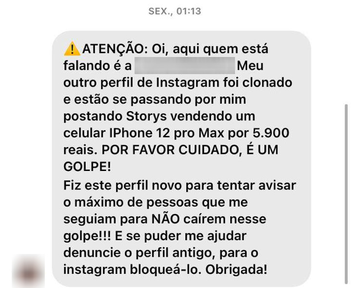 Na última semana, a jovem criou um novo perfil e enviou mensagens a alguns amigos alertando que a conta anterior dela na rede social Instagram havia sido clonada.