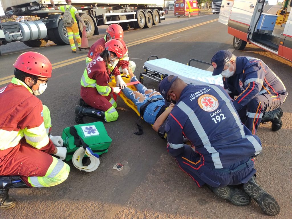 Equipes Bombeiros e do SAMU, juntamente com a CCR MS Vias, estiveram realizando os primeiros socorros das vítimas.