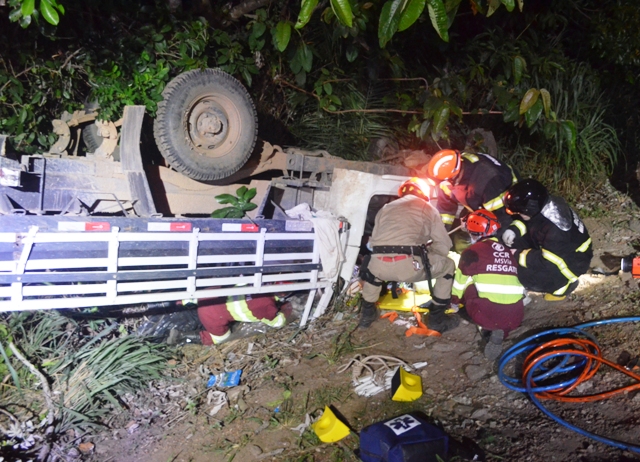Diante disso os populares acionaram o Corpo de Bombeiros de Coxim, que precisaram utilizar o desencarcerador, para retirar a vítima da camionete.